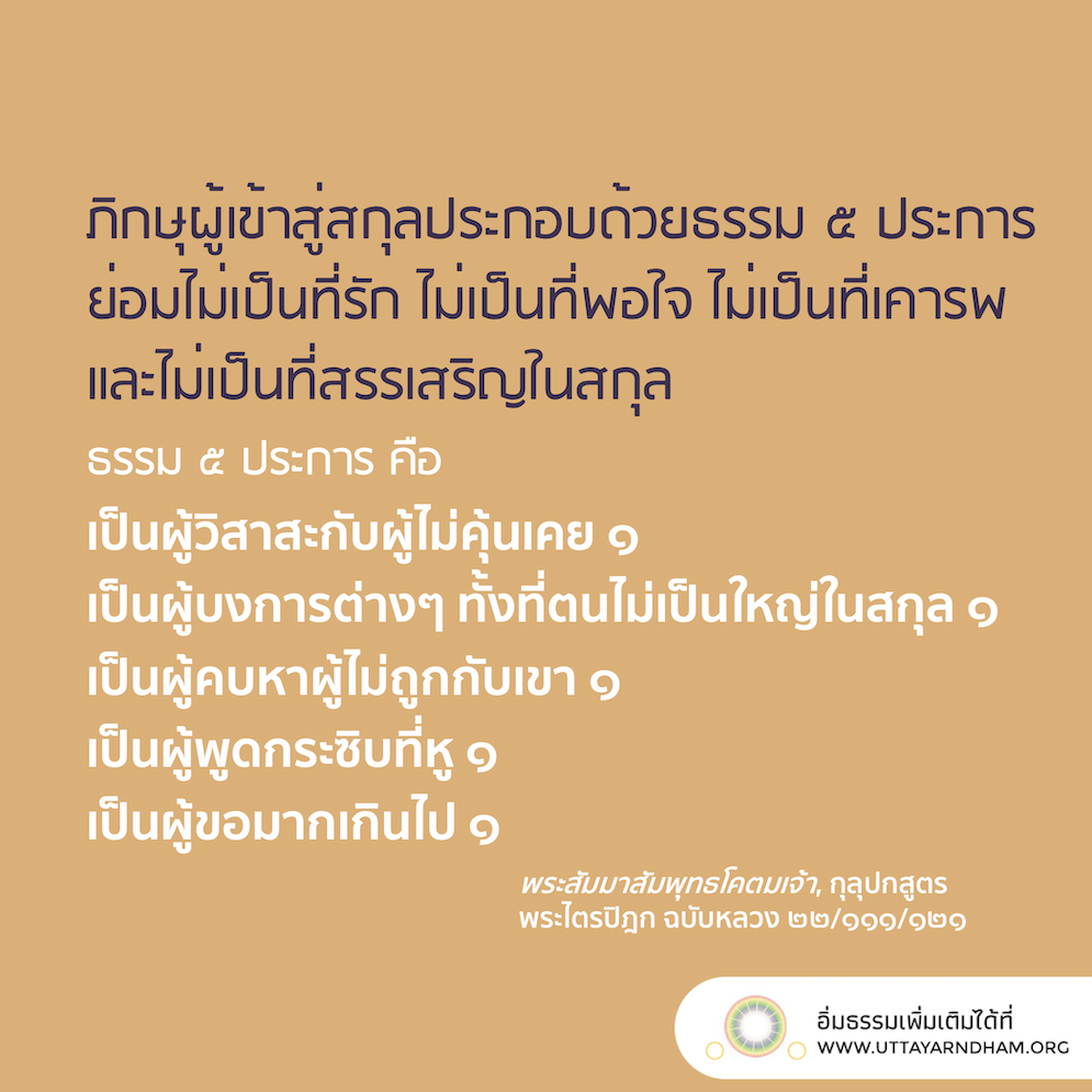 ภิกษุผู้เข้าสู่สกุลประกอบด้วยธรรม ๕ ประการ