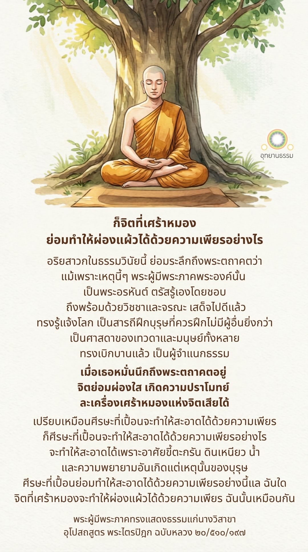 จิตที่เศร้าหมองจะทำให้ผ่องแผ้วได้ด้วยความเพียร ฉันนั้นเหมือนกัน