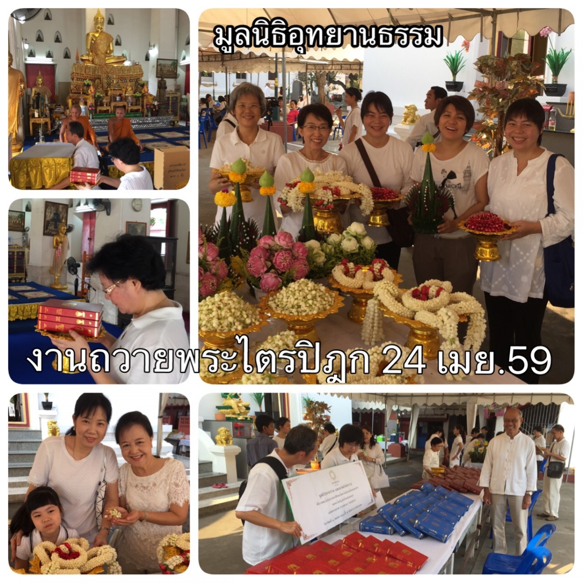 วันอาทิตย์ที่ ๒๔ เมษายน ๒๕๕๙ มูลนิธิอุทยานธรรมได้ถวายพระไตรปิฎก ๒ ฉบับ โดยทำพิธีถวาย ณ วัดอินทารามวรวิหาร เขตธนบุรี กรุงเทพมหานคร
